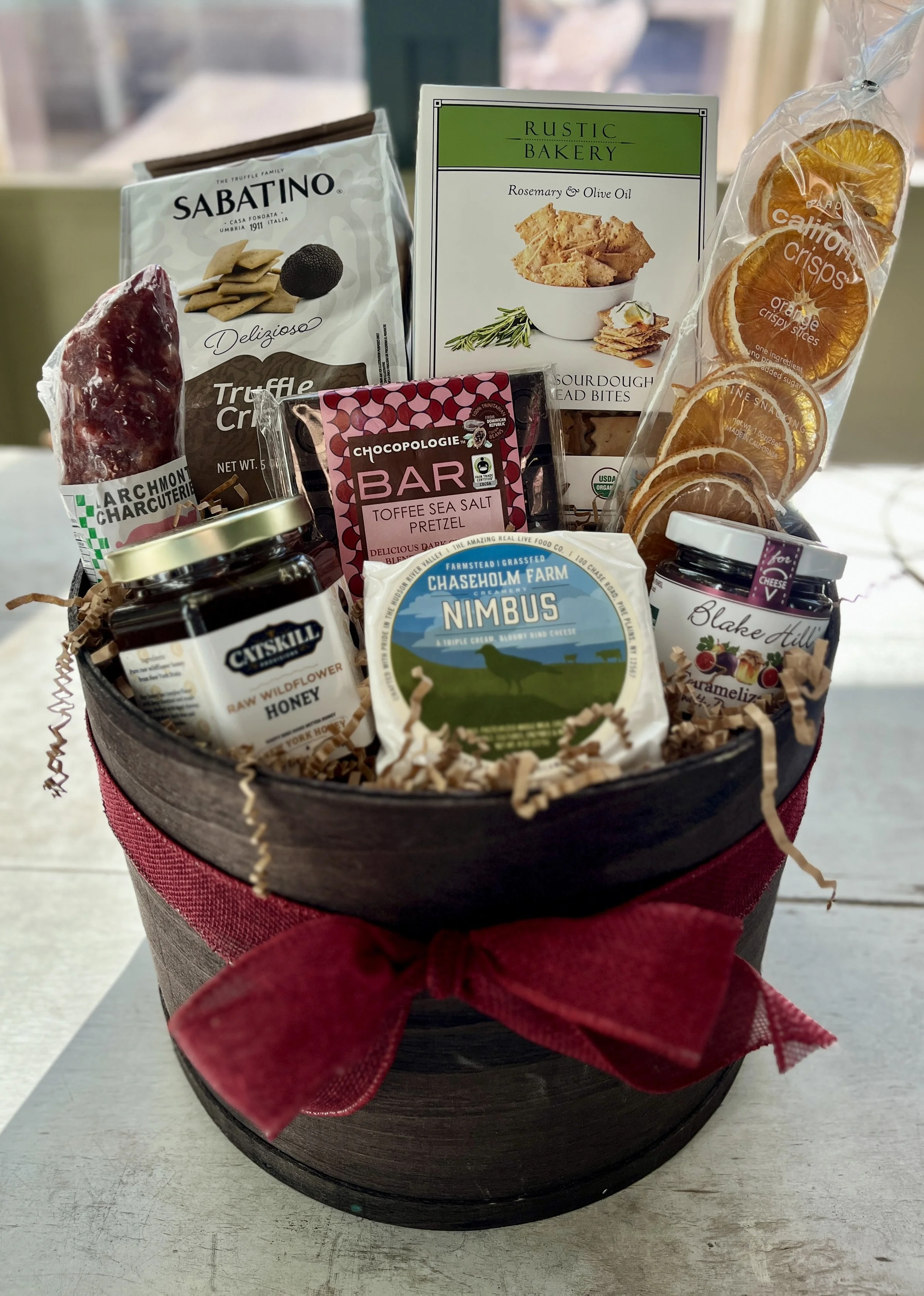 Tis the season to gather and toast to our many fortunes. We hope you’ll have time to share with your loved ones and we’re here to make your planning easier. Whether you’re looking to thank your hosts with a beautiful gift basket or to gather around a custom cheese board, we’ve got what makes your holidays memorable.